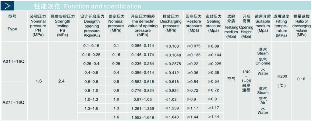 As a high pressure protecting device, the valve is used on the equipment or pipelines where the working temperature of flowing medium such as steam or air or water is the less than 2500C. When the pressure in device or pipelines is higher than allowable value, the valve will be opened automatically and pressure descend to the given point, the valve will be closed automatically, so the normal running of the device or pipelines was been guarantied.